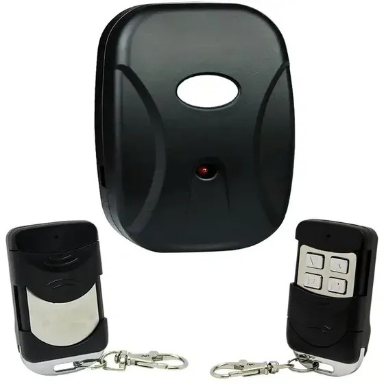 Receptora com dois controles com acionamento a distância com alcance de até 20 metros.